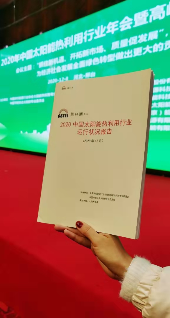 12月8日,2020年中国太阳能热利用行业年会在邢台召开。会上由中国农村能源行业协会太阳能热利用专委会、中国节能协会太阳能专委会指导,太阳界智库调查编写的《2020中国太阳能热利用行业运行状况报告》正式发布。