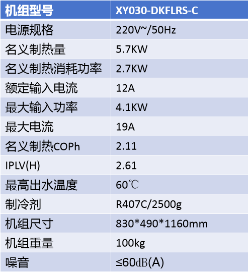 低环境温度空气源热泵(冷水)机组3P(XY030-DKFLRS-C)