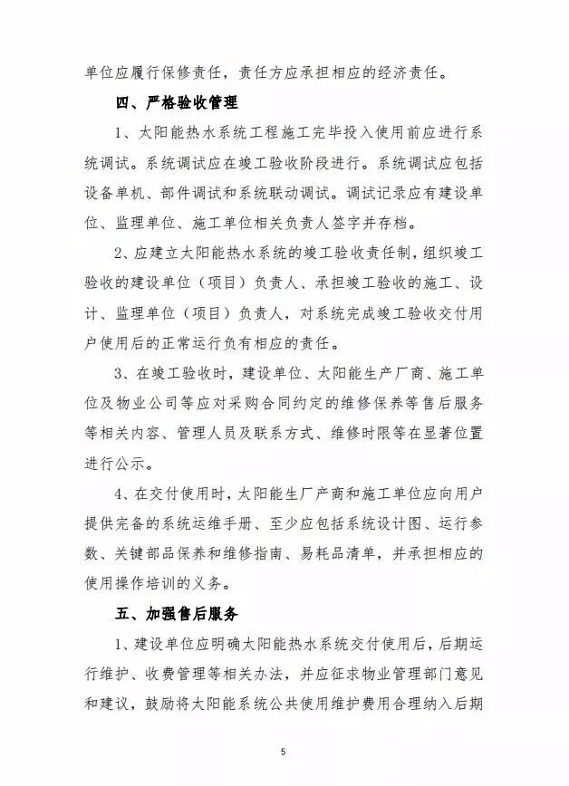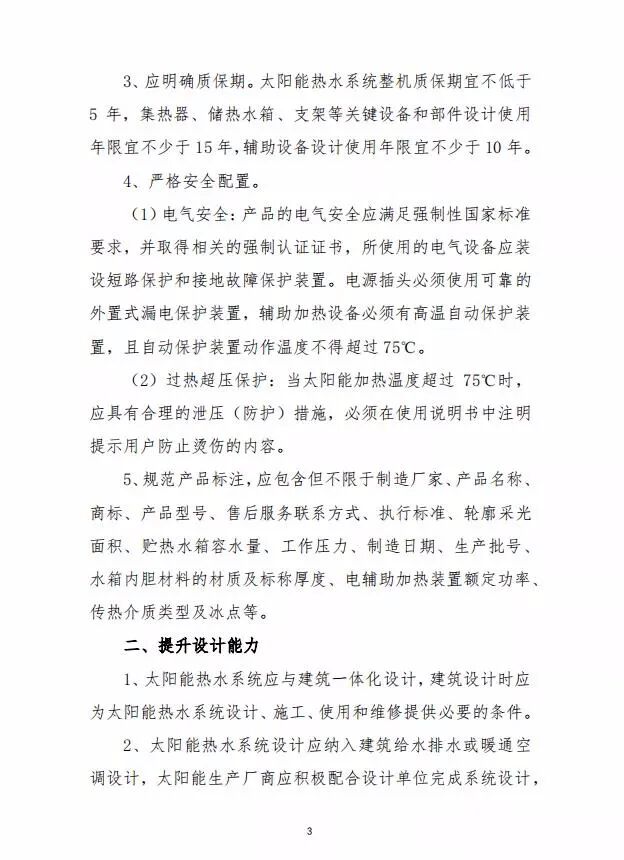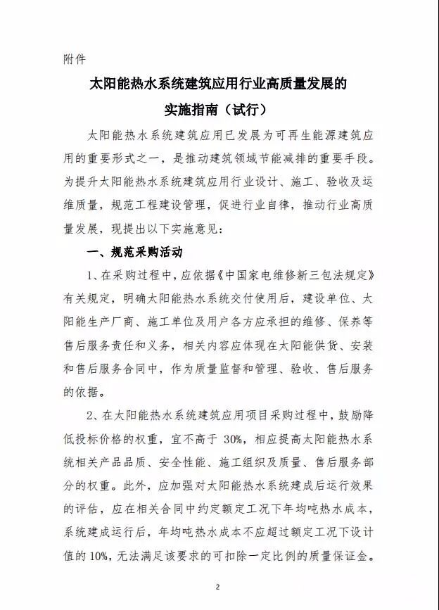 通知要求提升太阳能热水系统建筑应用行业设计、施工、验收及运维质量,规范工程建设管理,促进行业自律,推动行业高质量发展。并提出实施意见。